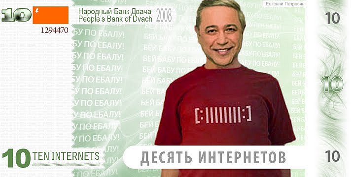 А что если нам возродить давнюю традицию, которая была на Том Самом Дваче, да и вообще бордах нулевых - валюты имиджборд. Будем использовать валюты Двача или сами сделаем талоны на интернеты, или будем использовать и те и другие? Я могу сам в Фотожопе сделать такие, только подскажите какие будем делать, тут нужно мнение большинства.
