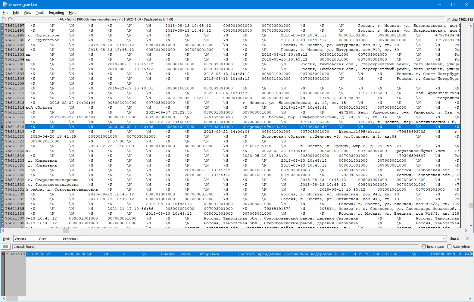 (актуальность дампа - ноябрь 2022 года, у некоторых есть место жительства, везде Москва, если что)